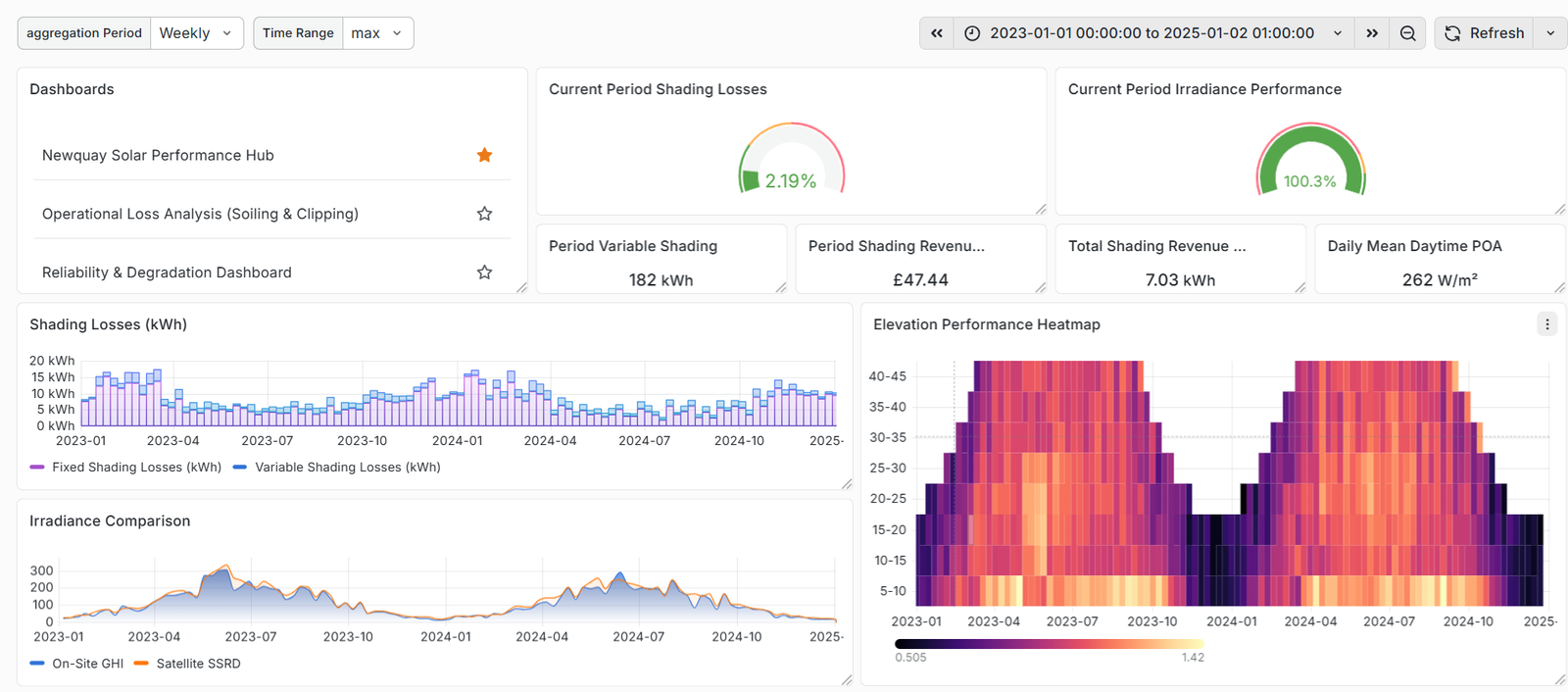 Turn your forensic baseline into a live benchmark. We provide concise, high-impact summaries that track overall asset health and specific shifts in your loss structure. From verifying shading recovery to degradation stability down to the string level, you get clear answers with deep-dive dashboards available when you need them.